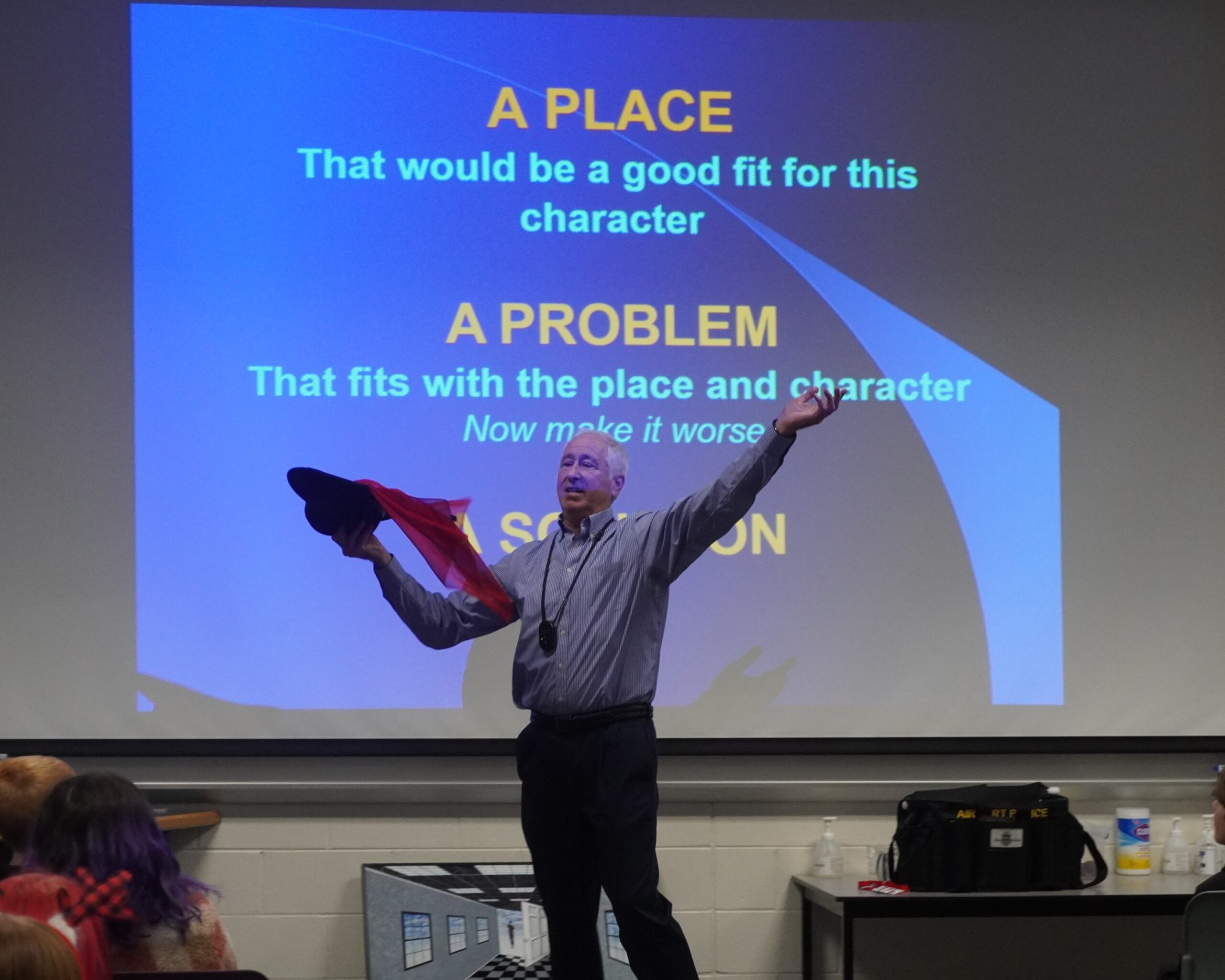 “David’s presentations to my classroom added to the interest in the books. He is an excellent speaker who offers students advice and tips that they can easily apply to their writing. His diverse life experiences and interests make it easy for every student to find a way to connect to him as a person. The magic tricks and interactive presentation kept the interest of even the most reluctant middle school students.”